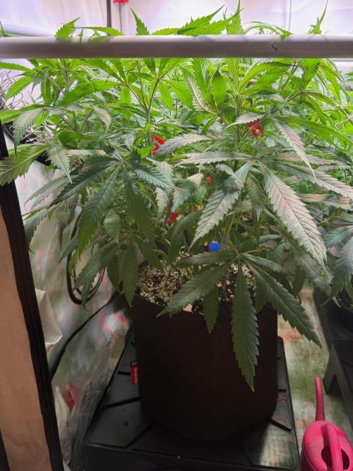 Zum Glück haben sie diese Stressige Phase hinter sich gelassen und wachsen kräftig und Gesund so wie man es gewohnt ist. Im laufe der Woche kamen hier und da Budclips zum einsatz um die Pflanzen zu öffnen wobei die Chemferno und Red Hot Violet gar kein trainig brauchen. Was bei allen gemacht habe ist die großen Blätter unter Seitertriebe zu klemmen die sie verdecken. Das sieht nicht so schön aus wie die natürliche symetrische Form aber was zählt sind am Ende kräftige Seitenäste die viel Licht bekommen stark sind und große Buds tragen Können. Mit dem gießen halte ich mich ein wenig auf der geizigeren seite damit die Wurzeln auf Suche gehen und den Topf durchwachsen.