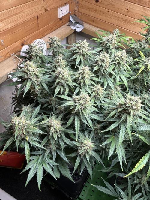 jdean88 The strawberry gorilla is now chopped she finished a lot faster than the rest 9 weeks 6 days il add photos when she so dry iam guess 40-50g plants she was only small but super frosty beautiful smell.fur the otter the blue dream is getting close another couple weeks the others about 3 maybe 4 the west coast seems to be a very sensitive plants but never less she is stacking super frosty dense looking buds thays smell out of this world the og is also stacking
