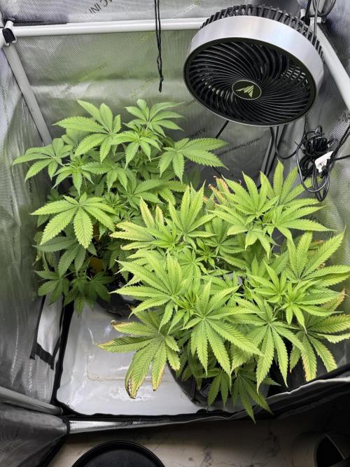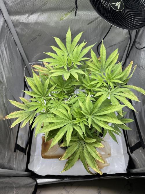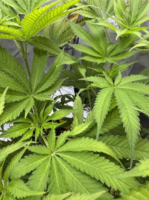 Yeah, I don't not what to say. This genetic is insane and she will be a monster, much bigger than the rest in the tent and I am kinda scared haha. Thinking about topping the side branches but the soil volume is not thaaaaat big. That‘s why I don't want to have too many big branches to not underfeed her in flower. So I don't really know how to proceed. The Blue Zushi needs some more weeks and by then this plant will be absolutely crazy.
