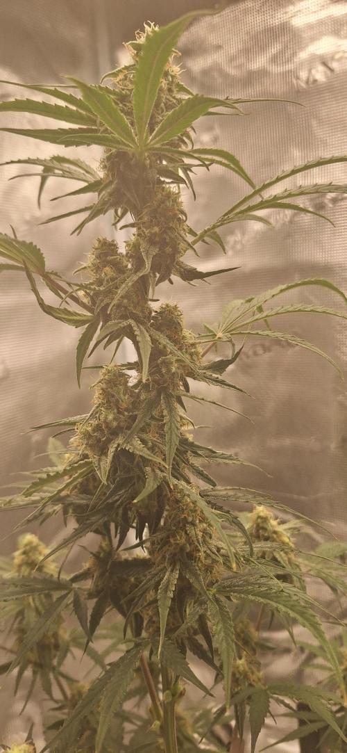 The ladies are doing well developing their flowers and are starting to smell more intense. They're now drinking about 500ml every two days. When you put your finger in the pot to check how wet they are, you can feel roots everywhere. The Hy-Pro root stimulator has done a great job and has proven its worth. The ladies are now an average of 50cm tall. I also removed some excess leaves today so that the light stream reaches everywhere.