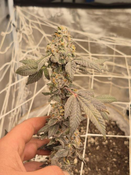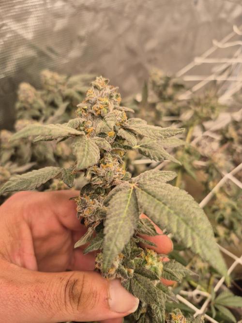 Gary Satan has a SUPER pungent sweet gas terp going on. Also was a super late bloomer. Suddenly some colas are as tall or taller than the GMO!