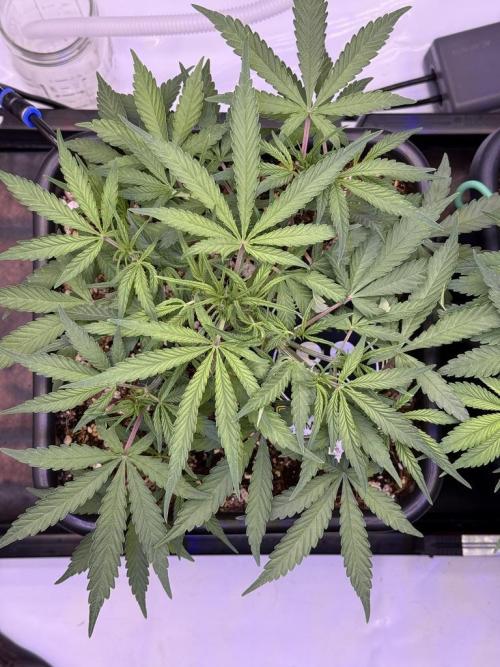 9/20-First 3 weeks went well. FIM was good and she's growing out nicely from there now. Autopots are working fine. AI+ controller is keeping VPD steady at 1.10. PH and EC are steady from Res to tray. Would love to see her start to get a bit taller now.