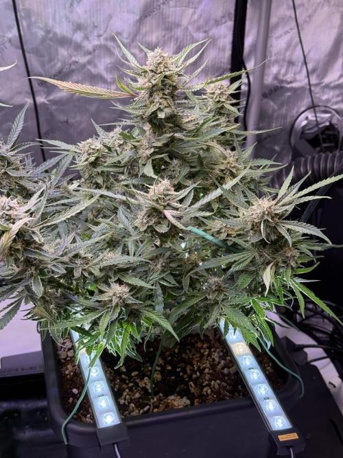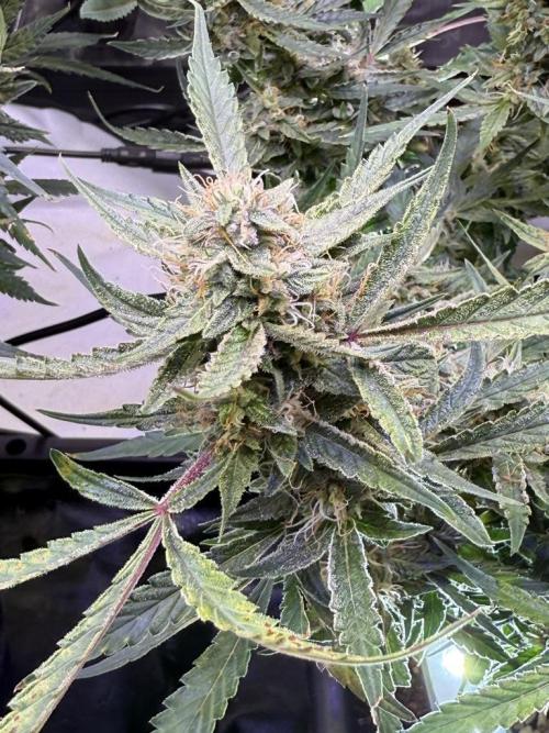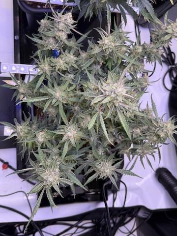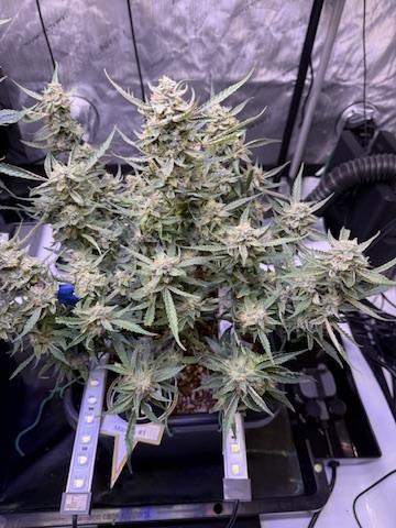 renbuds 11/4-She's still small but mighty. I've slowly been defoliating and bending branches to get more light into the canopy from above and below and I think its working. The buds are still small but trhey are getting some density now. I continue to dial back the nute mix by adding regular RO water to slowly flush. Fingers crossed that she at least has the Mango Smile quality I've grown accustomed to.