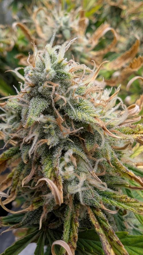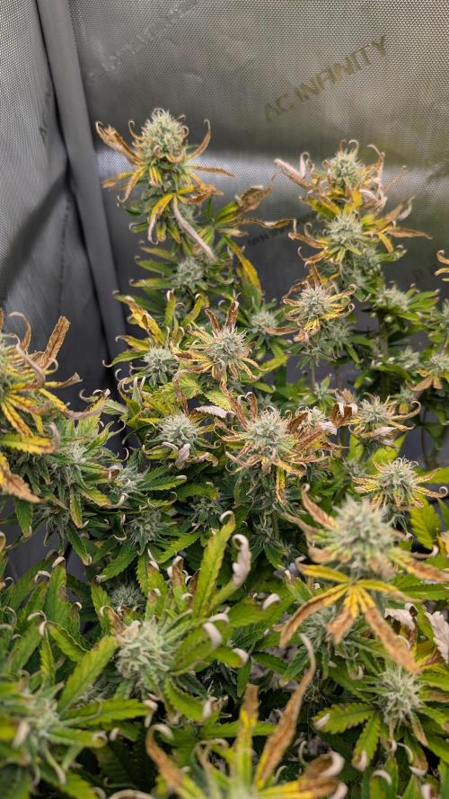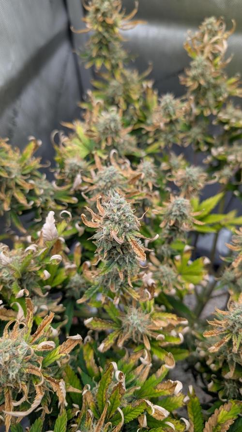 @Cauli, Vielen Dank! Mal gucken wie dein Sour Jealousy run läuft, vom Geruch her kannst du dich auf was gefasst machen :) Meine Dame wird schon noch genug abwerfen, hab auf jeden Fall viel für den nächsten Grow gelernt. Aktuell sterben nur die betroffenen Blätter ab, das neue Wachstum sieht schon besser aus