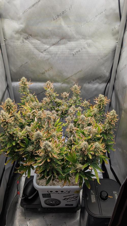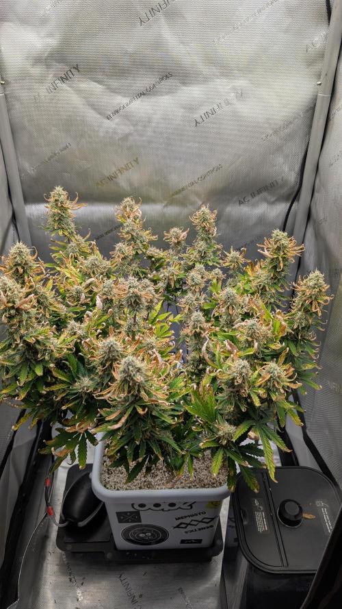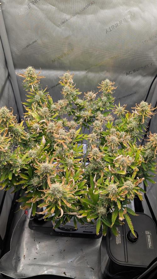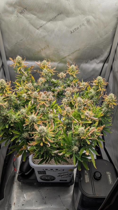 stutch Aktuell ist es wiedermal sehr langweilig. Kontrolliere jeden Tag den PH, der relativ stabil bleibt, und stecke den ein oder anderen Trieb wieder unters Netz. In der vergangenen Woche kam die neue Lampe an, ein Ionboard S33 von AC Infinity mit 260W. Die Lampe ist schon heftig überdimensioniert, läuft aktuell aber nur auf 40% und leuchtet das gesamte Zelt bis zum Rand deutlich besser aus. Der Plan ist eine sehr gleichmäßiges Blattdach zu erzeugen um alle Buds mit ordentlich Licht auszustatten, bis jetzt klappt es ganz gut :)