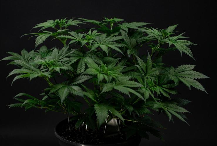 🔸Stretching has begun, but remains under control. Internodes remain short to medium, the tops are at the same height – exactly as I wanted. The first fine pre-flowers are appearing at the nodes – the switch to 12/12 is taking effect. Leaves are being further “tucked” so that light can reach the center and air can circulate well. I'll wait a few more days before doing any major defoliation.