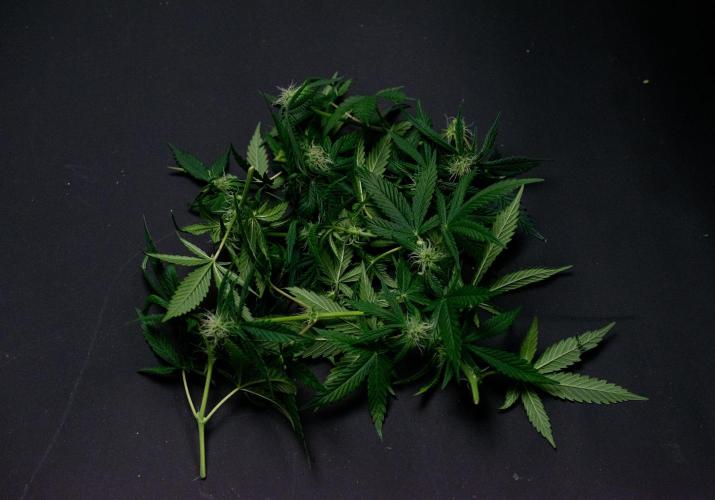 🔸 Continue gentle leaf tucking to allow light into the center. Light lollipopping at the bottom and 2–3 large fans removed to improve airflow and bud sites.