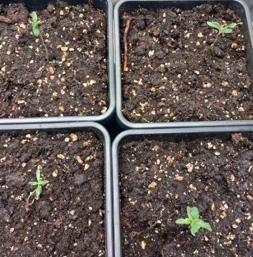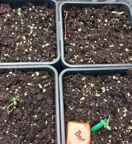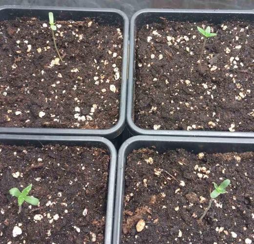 Xipsiomega1 Germination in plant cubes in propagator after 12 hours in a glass of water. After 2 days went to 2 lt pots for about two weeks. 9 plants will end in 30 lt pot. Photos are from day 3