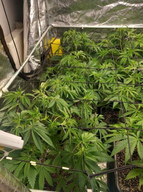 Xipsiomega1 End of the first week in flowering, day 50 from sprout. I gave them 30 hours of darkness before switch to flowering and set the lights at 11/13 schedule for pushing to flower and avoid excessive strech. Some of these strains can stil grow for 4-6 weeks in to flowering. Plants look good. I tie up at the net every day and i am trying to keep the buds sites and stems down . I will try to do it in week 2 too to fill almost every inch of the net (1,5x1,5 meters). I water every 5 days generally and i give them 3lt of tap water. I don't measure ph as my grow is fully organic.