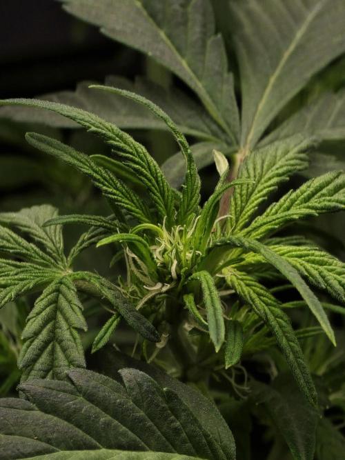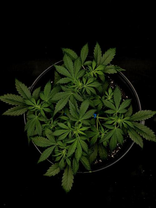 She’s officially transitioning into flower this week, with pistils showing across her bud sites. Growth is looking solid, and she’s adapting well to the switch into bloom.