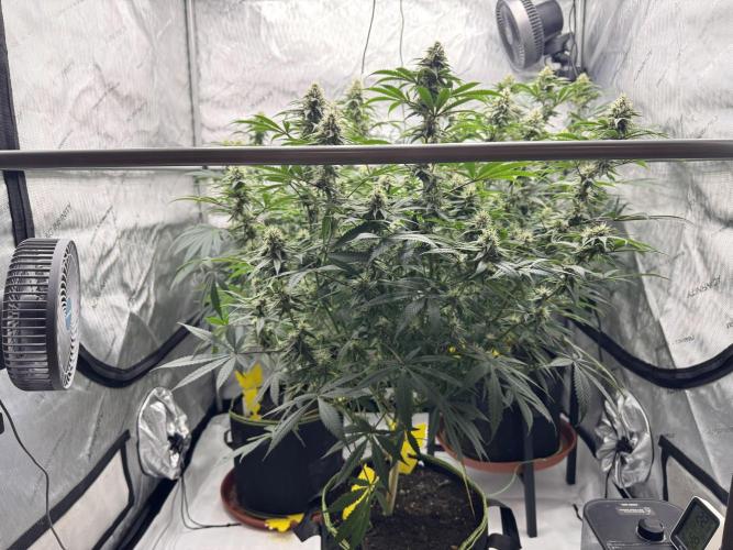 Gardens_of_Of The week was super humid fluctuating around 90 % whole week and I could not manage to decrease the humidity below 60 % in the frow room sometimes which resulted with a single leaf of small powdery mildew on both Dripz and Star KillerxGrape Soda. I quickly removed the effected leaves on both hoping to catch it early. Therefore, I am running humidity around 50 % now but this increased the temp to 26,5 Celcius during day and 23-24 Celcius at night.