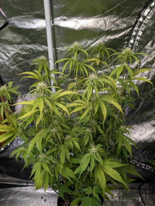 smoking_hills9 2 many plants in the tents. 41 in total, ideally 30 for the tent this size. But I am not complaining. Extra 11 trees that's have a kilo of buds, so it's ok lol. Crop is doing great, most of trees are huge, and ready to do their thing.