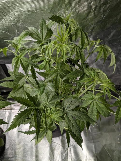 smoking_hills9 Doing great, start adding nutrients. Slowly defoliating top leaves
