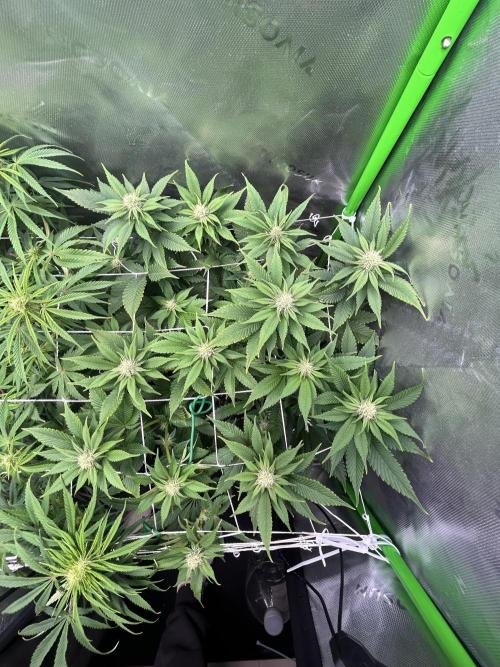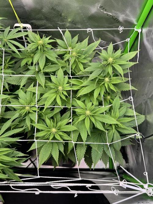 BearBuds I finally correctly diagnosed the problem in my tent. From the start of veg these plants have been growing very slowly, showing signs of nute burn, light burn, always with leaf tips pointed down. I tried everything from a new pH pen, lowering the ppms, changing res water, raising the light and I could not figure it out. Finally, this week I realized my nutrients were about 3 years old and had somehow gotten water in them which made the salts bad. Threw them all out, went to the store to picked up Canna coco line (first time ever using them) and within 48 hours they were stood up, new growth was exploding out, and they have grown about 5 inches in their first week of flower. Hoping that by the middle of this week they will at 25 inches so I can put the scrog net in and spread them out some more.