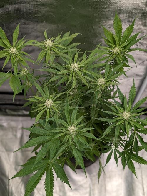 smoking_hills9 Doing great, start adding nutrients. Slowly defoliating top leaves