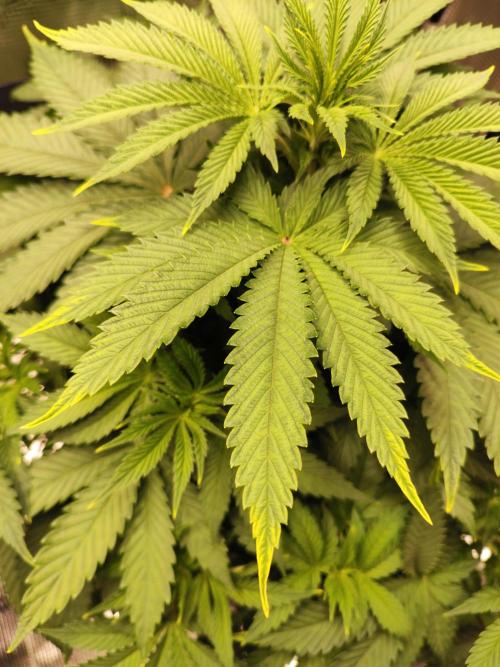 Zerpses Die Pflanzen haben das LST und Topping gut weggesteckt und wuchern regelrecht in der Breite und Dichte.
