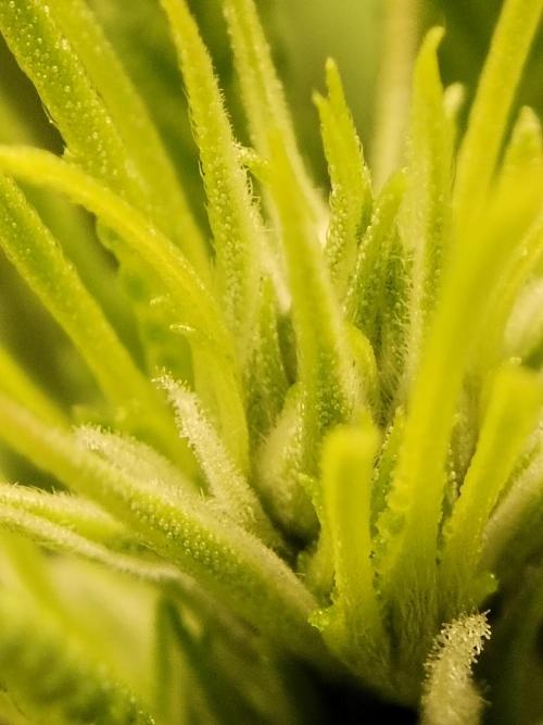 All_our_small_plants Bewässerung: 700ml pH-Wert: 6,1 EC-Wert: 1,2 Temperatur: 25ºC Luftfeuchtigkeit 62% Schädlingsbekämpfung: PPFD: 500 µmol/m²/s DLI: 33 Düngemittel: Mineralischer Dünger 3.5-6-6 Besonderheiten: Wurden direkt in die erde gepflanzt in einer Kokos-Quelltabletten. -Tag 37 Heute haben wir sie wieder gegossen und mit dem Blüten Dünger begonnen. Wir haben ihr nur noch 2 oder 3 Blätter entfernt und werden ab jetzt nur noch diese entfernen die Stören -Tag 39 Sie hat heute etwas Dünger bekommen 😍 -Tag 41 Sie hat mit dem Stretch angefangen. Heute hat sie Wasser mit Effektive Mikroorganismen und Plagron Power Buds bekommen und sie war beim Friseur 😝