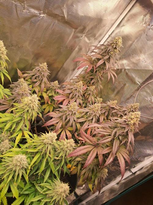 Die zwei Seitentriebe sind mir ganzschön abgehauen, richtige Brecher. Sie hat auch einen sehr süßen leichten Duft bisher, geht etwas neben der Pineapple Express unter, bin deshalb sehr auf das Glas später gespannt. Overall aber eine richtig tolle Pflanze mit den fettesten Buds im Zelt :D