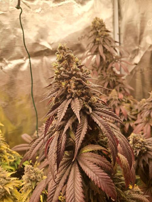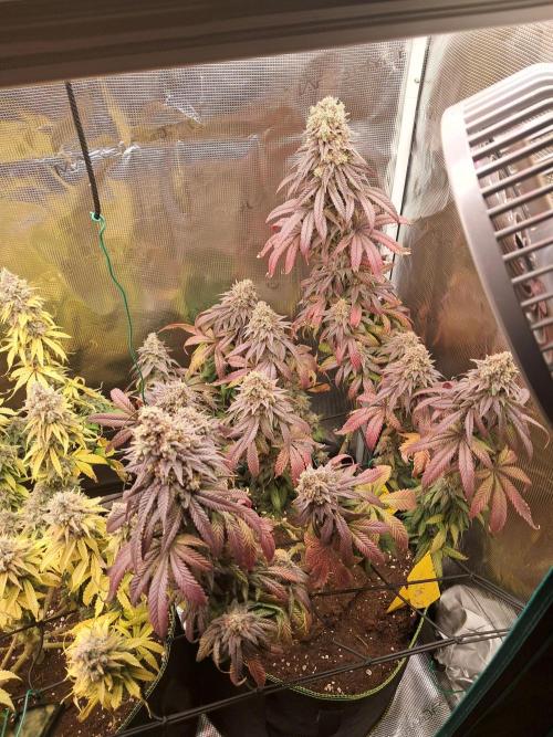 Grow4ever Die letzten Wochen vor der Ernte waren echt noch ein auf und ab der Gefühle. Das Wetter, sehr feucht und kalt, hat es mir leider echt schwer gemacht. Budrod in einer Cola der Pineapple Express 😮‍💨 Die Cola stand deutlich im Windschatten, deshalb hoffe ich, dass sich der Pilz nur in dem Mikroklima ausbreiten konnten, die Sporen sind aber leider überall. Jetzt hängt alles zum trocknen und ich muss die Buds genau untersuchen, später bei trimmen werde ich ganz genau jeden Bud mir von Innen anschauen. Außerdem ist mir die Lemon Orange deutlich abgekackt. Die krasse Geldfärbung kam innerhalb von zwei Tagen. Ich glaube es kam mit einer trockenen Phase mit hängenden Blättern kurz zuvor, in der ich 1-2 Tage zu spät gegossen habe. Hat das Bodenleben wohl garnicht verkraftet. Die Blueberry Muffin hat mit Abstand die fettestens Buds und einen dezenten süßen Duft.