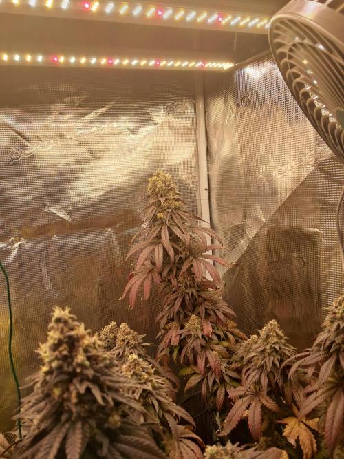 Grow4ever Blüte geht stetig voran. Wenn das Zelt aufgeht kommt mir ein süßlicher Duft entgegen. Zudem bekommen die Blätter eine tolle Rote Färbung.