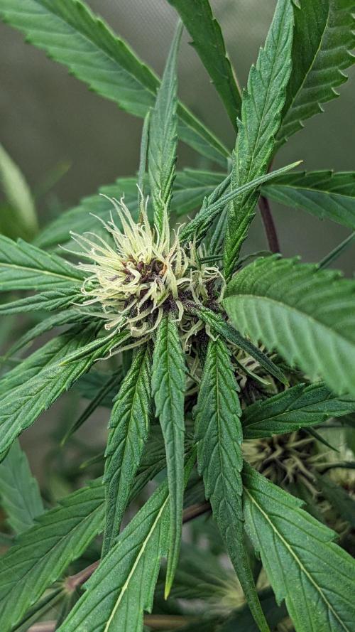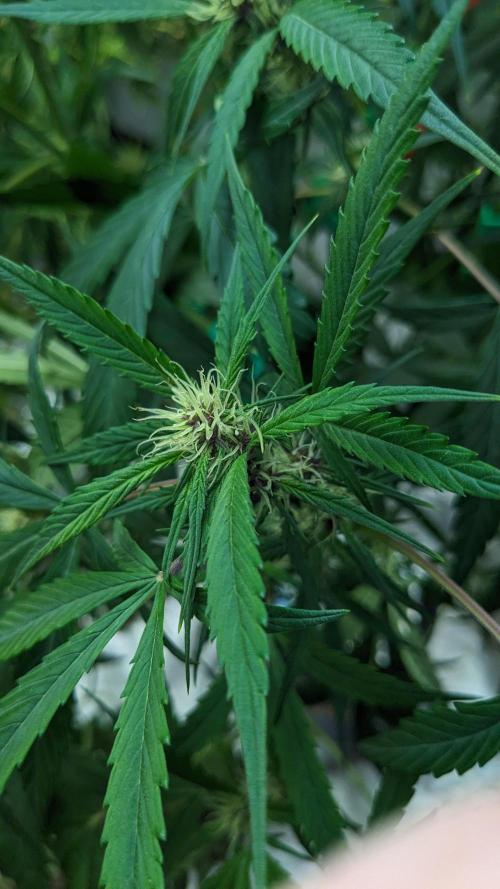 GroloCup She's rolling along! I've defoliated, used a few LSD clips and lollipopped all the lowers that usually become larf come trim time. She's really starting to put off some dank odors and a little color is creeping in as well.
