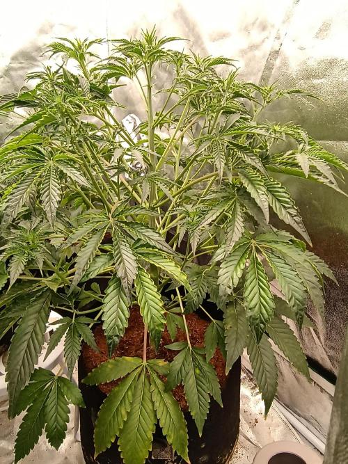Mrdub She is just jamming out nice structure growing pretty fast water her every other day a lil bit a time trying some mycos n recharge to see how she responds and seems to be responding pretty well nice fat leaves should be ready to flower in a couple weeks