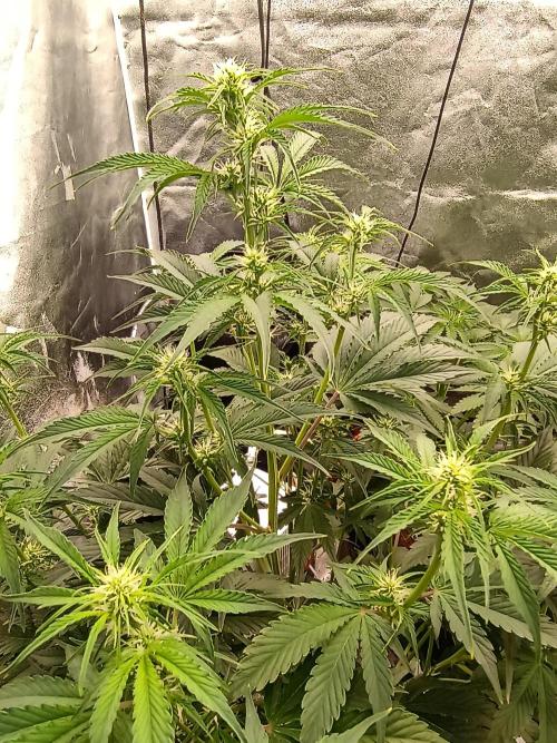 Mrdub This girl is just jamming out pistols starting to for she got a nice stretch going trying tuck bigger fan leaves to get more light to bud sights Can't wait to see her when she completely flowers out water her twice a week and once a week with a recharge tea she seems to loves and the roots and going crazy over it she going to be a beauty