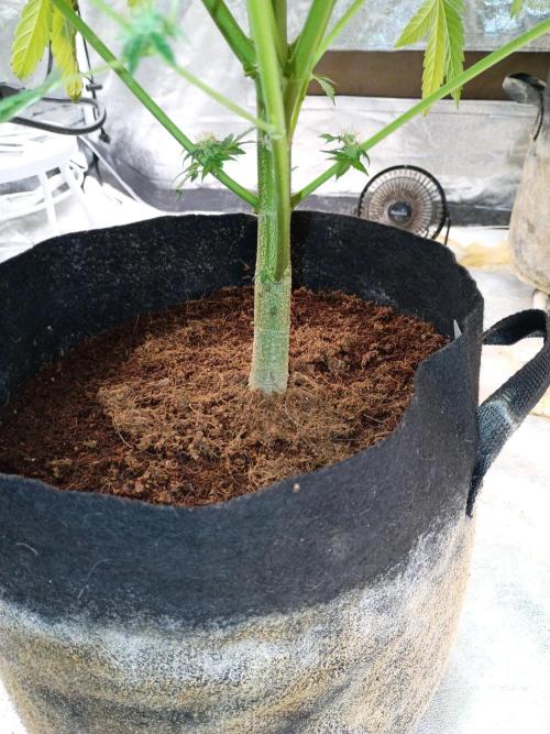 Mrdub She is just jamming out nice structure growing pretty fast water her every other day a lil bit a time trying some mycos n recharge to see how she responds and seems to be responding pretty well nice fat leaves should be ready to flower in a couple weeks