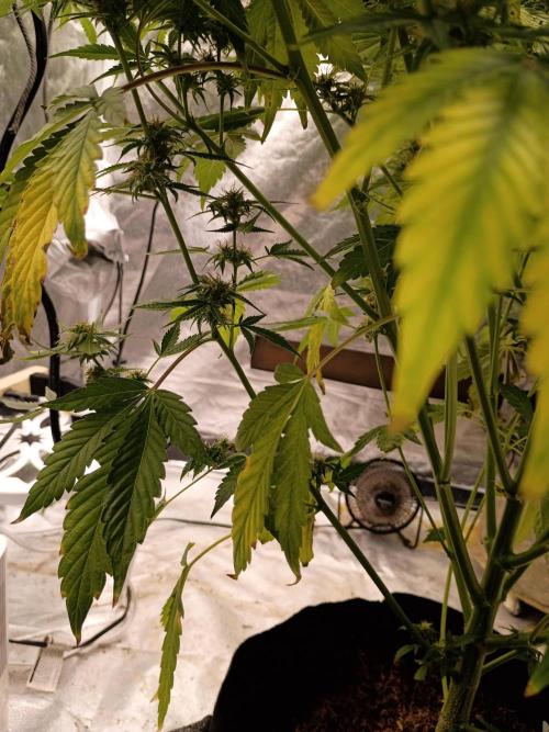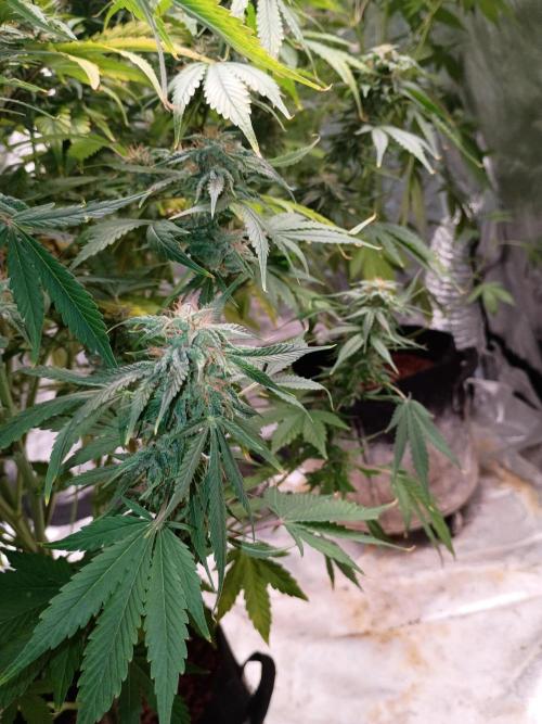 Mrdub This girl is just jamming out pistols starting to for she got a nice stretch going trying tuck bigger fan leaves to get more light to bud sights Can't wait to see her when she completely flowers out water her twice a week and once a week with a recharge tea she seems to loves and the roots and going crazy over it she going to be a beauty
