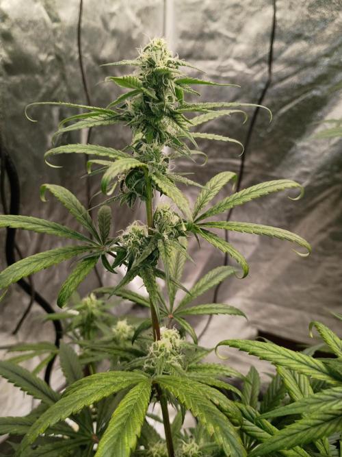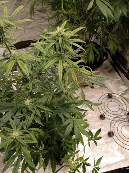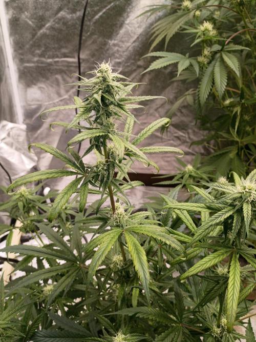 Mrdub This girl is doing fantastic she has pistols everywhere should be starting to turn any time has a nice thick sturdy stalk and stems nice stretch it stretched up instead of out buds are getting fatter looking she should running right on time nice little 16x16 canopy so here's to another week with this gourgous girl