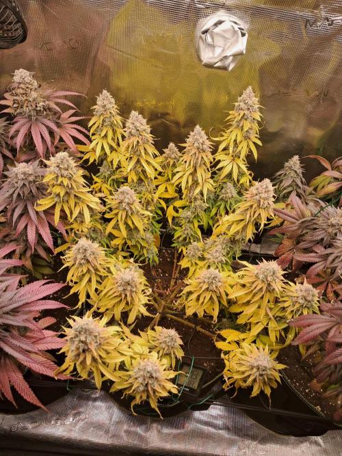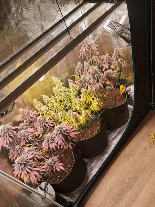 Grow4ever Die letzten Wochen vor der Ernte waren echt noch ein auf und ab der Gefühle. Das Wetter, sehr feucht und kalt, hat es mir leider echt schwer gemacht. Budrod in einer Cola der Pineapple Express 😮💨 Die Cola stand deutlich im Windschatten, deshalb hoffe ich, dass sich der Pilz nur in dem Mikroklima ausbreiten konnten, die Sporen sind aber leider überall. Jetzt hängt alles zum trocknen und ich muss die Buds genau untersuchen, später bei trimmen werde ich ganz genau jeden Bud mir von Innen anschauen. Außerdem ist mir die Lemon Orange deutlich abgekackt. Die krasse Geldfärbung kam innerhalb von zwei Tagen. Ich glaube es kam mit einer trockenen Phase mit hängenden Blättern kurz zuvor, in der ich 1-2 Tage zu spät gegossen habe. Hat das Bodenleben wohl garnicht verkraftet.