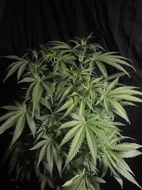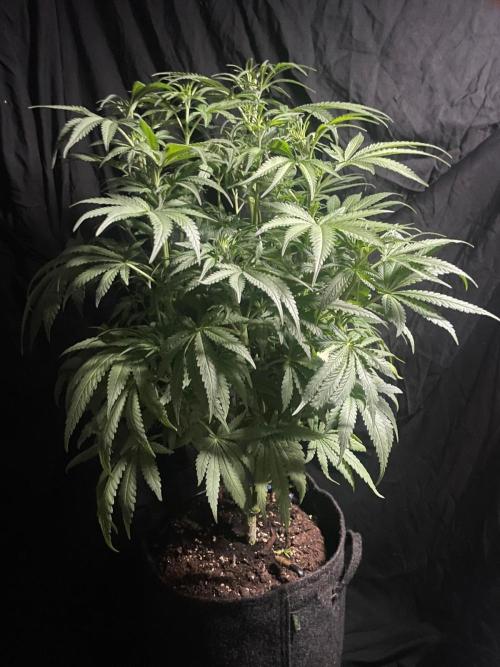 Everything went okay with my Super Boof this week, though it could’ve been better. I should’ve waited a bit longer before the last topping. The fourth heavy pruning hit her a bit harder—she took longer to bounce back from the shock. By now, though, she’s looking good again and continues to grow compact and bushy. I’ll switch her to 12 hours in a few days and send her into bloom.