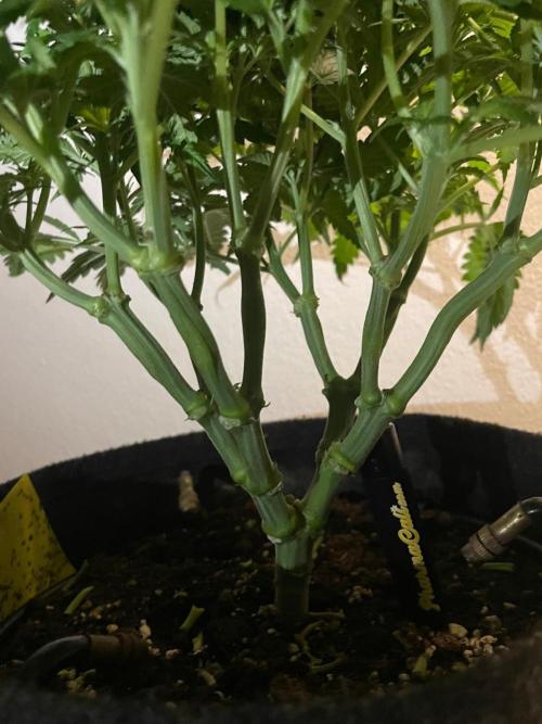 My Gushers is growing incredibly compact. Aside from that, she’s put on solid growth, and all the topping and training has really paid off. I’m curious to see how she handles vertical stretch once I flip her to flower.