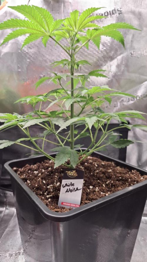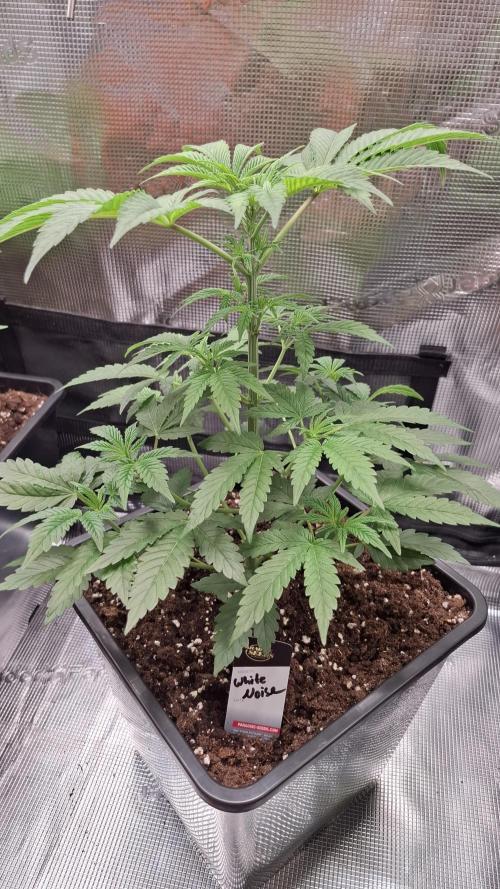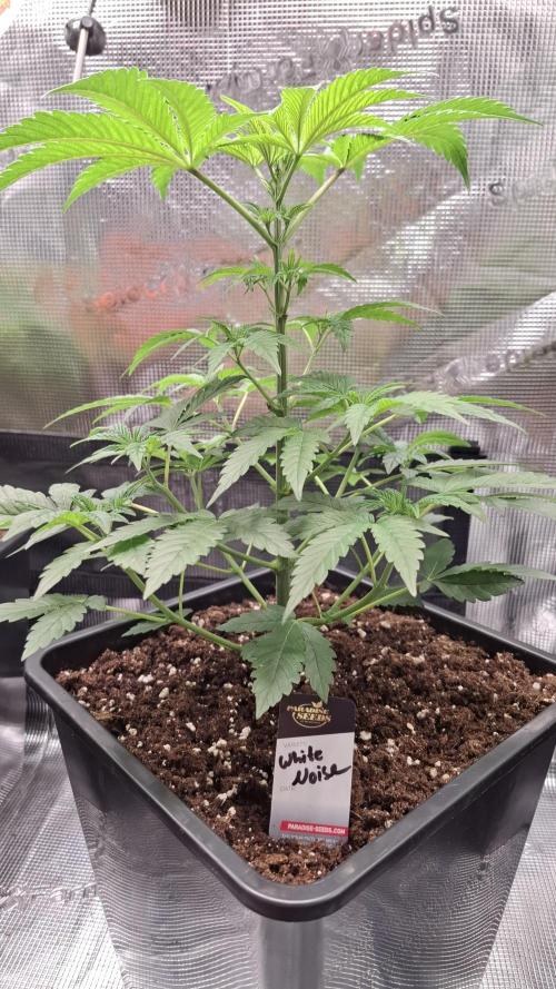 The White Noise is doing well. It is getting stronger and stronger. The first three finger leaves are forming, and the vegetative phase is getting closer and closer.