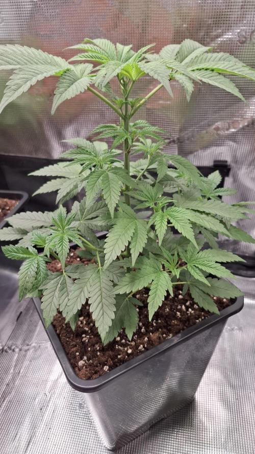 Somit hat Sie jetzt genug Platz um zu einer feinen Lady zu werden , heute begann der erste Vegitag da das erste 5 Fingerblatt voll ausgebildet ist.