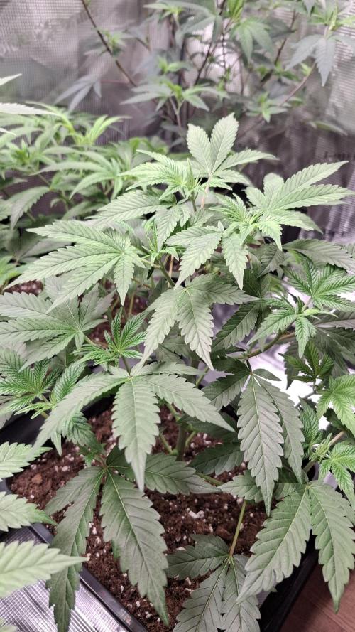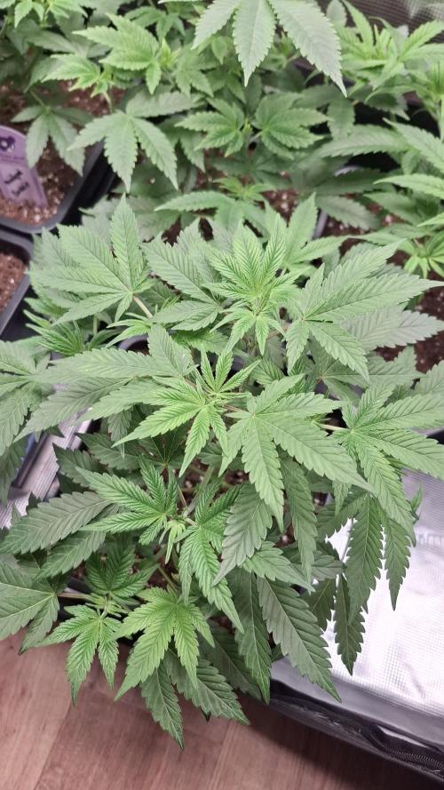 Sie hat ein schönes helles grün, der Light Mix von Biobizz reicht locker bis zum 1 Tag der Vegiphase. Die bei mir mit den ersten ausgebildeten 5 Fingerblatt beginnt aber die meisten kommen auch bis zum 8 Tag aus.