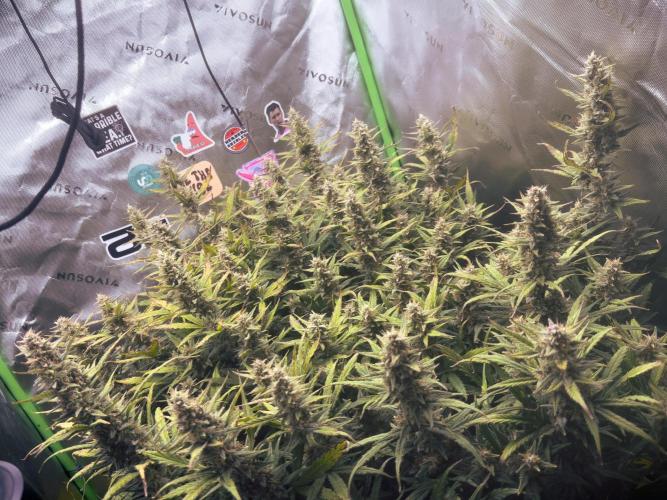 Hangman905 Got a few colas catching up from when I opened her up. Lights got dropped to 60% so shed stop burning. Overall she’s smelling strong. Steady stacking bud sites. Airflow has been a pain this grow with how thick she is.