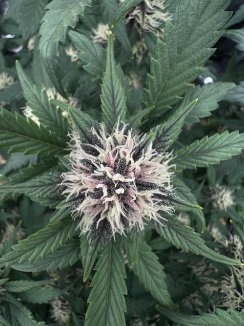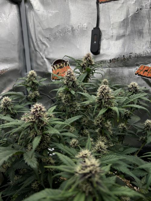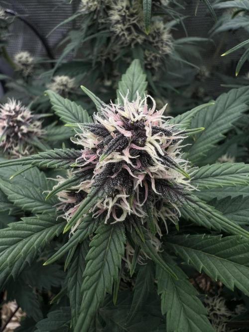 Growhome_90 02. Oktober: Die Pflanze ist in dieser Woche gut gewachsen, die Buds fangen an sich zu bilden. Wenn man sich die Blütenkelche auf den Bildern anschaut, kann man sich vor Vorfreude kaum halten, denn die ersten Lila Töne machen sich in den Blütenkelchen bemerkbar. Die Änderung im Gießrythmus scheint langsam zu wirken, denn immer weniger Blätter zeigen Anzeichen von Überwässerung. Bald wird es die erste Düngung geben.