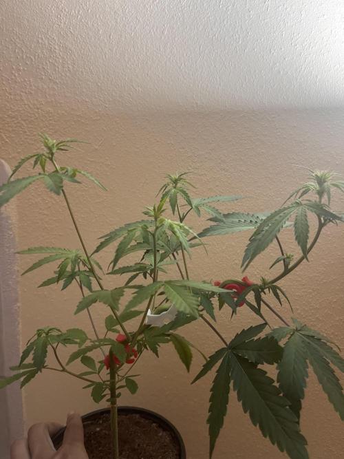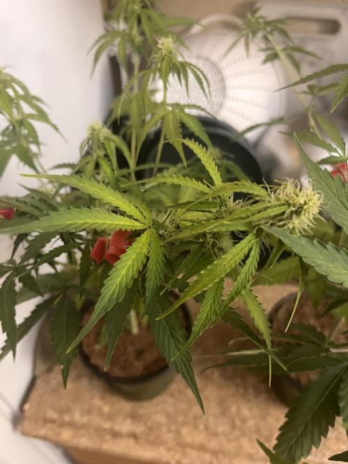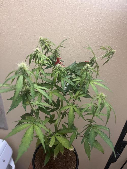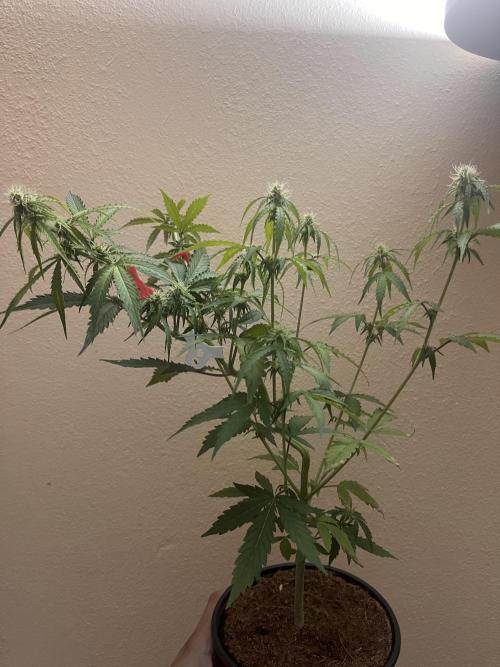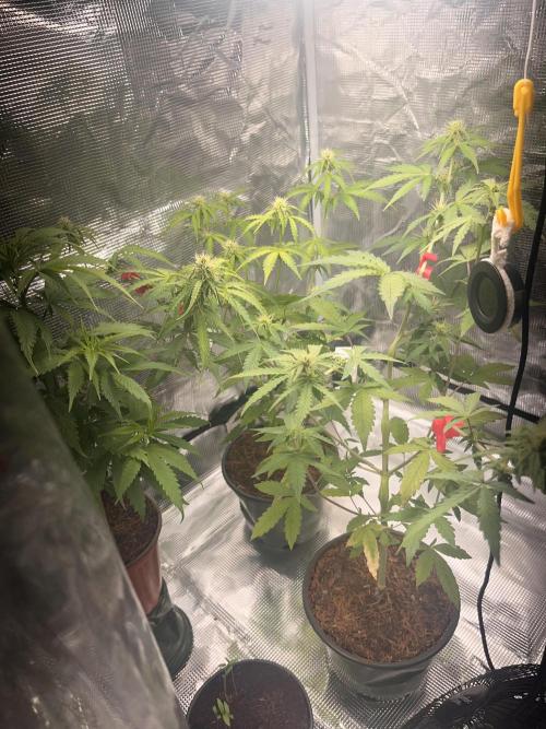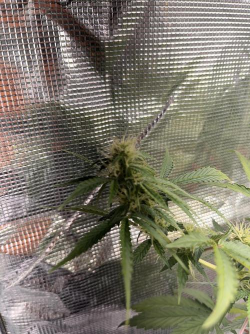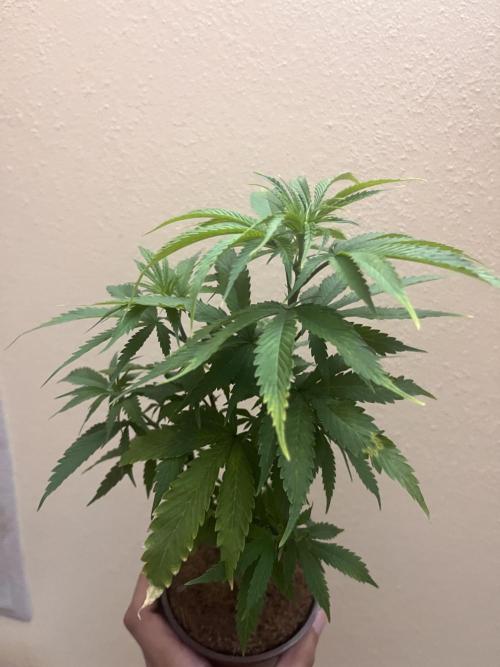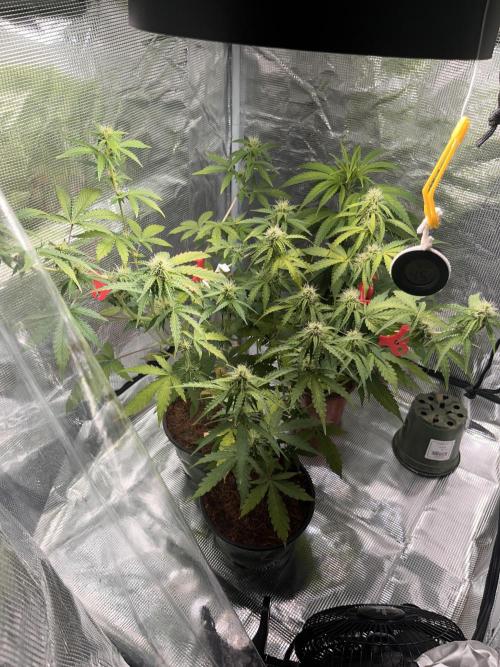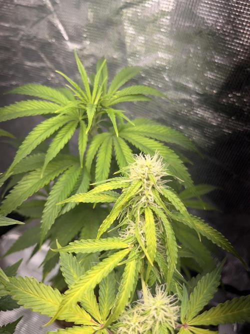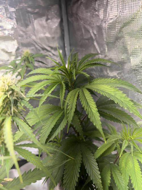 smokeshi I promise later in flower I will take better pictures for overall plant appearance and structure im just being really lazy at this point even though these girls will be done in a month and a quarter. Overall they are doing fine but due to the small pot size, they are starting to get finicky with watering schedules. I wouldve transported them earlier but i didn’t want them to get stressed out and i’ve been using visual plant cues to see if they need or don’t need water like droopyness amongst bud leaves/plant leaves. The photo looks like its still dealing with issues nutrient wise but it needs to hold on until late november so i can take cuttings. Watering here on the island has been unpredictable with our tap water fluctuating in hardiness. Its been a real stinker. Before we started at a base of 375 ish ppm of hard water and about a week ago we were getting water that was recently treated due to a blockage/hurricane fckin Jerry. This obviously is probably what causes my photo to be extremely pissed off. For that reason, i’ve been walking to a location to get better treated water but is still at a high minimum of around 467 ppm. I am also a day late posting so again my bad. We will see how this water situation will go but lately i’ve started to see that the girls want more water then just about a liter and a half, throughout the day not just per watering like i’ve been doing every other day. Also forgot to mention, both girls needing more then 3 LST clips for size of tent due to stretching. I don’t really believe in topping anymore but only because I like plant timeframes to be predictable, not because i wouldn’t care to try it again like my first grow. Will keep y’all posted. Wish them luck!