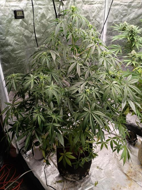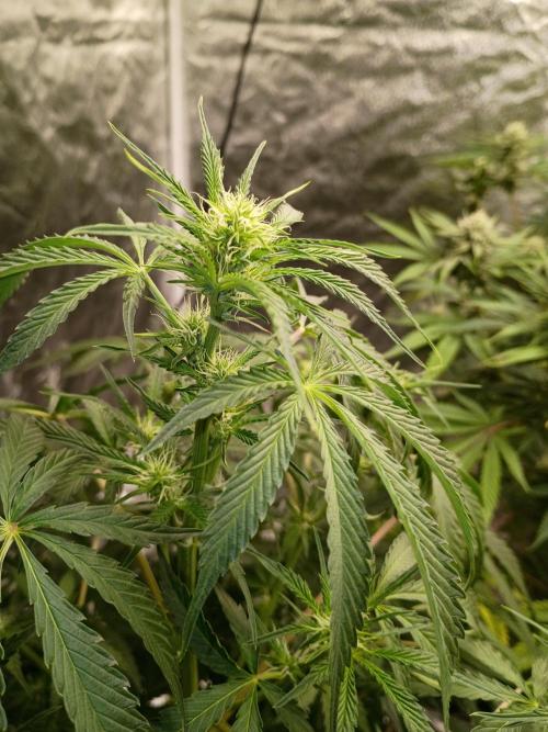 Mrdub This girl is taking her time finally opened her bud sights pistols starting to form but the stems are pretty weak lots of veg prob due to strive nutes I have mixed feelings about them to much nitrogen not much smell this one is def gonna be Christmas tree it's gonna take so long she does has a nice stretch with 32x32 canopy