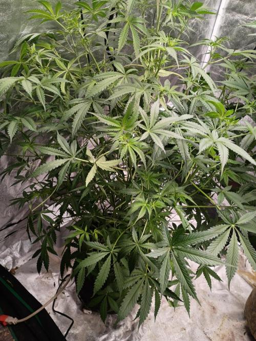 Mrdub She's a little behind do to her being shocked a couple times but she seems to be doing fine now a little shorter and busier then I thought shes finally starting to flower I wanna defoliate but I don't wanna shock her any more prob the one n only time I use strive nuts I'll stick with lotus nutes here's to another week with this beautiful girl