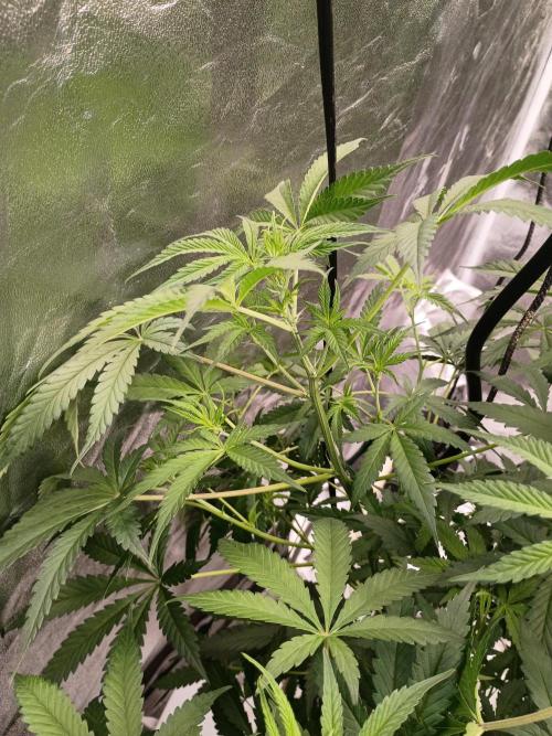 Mrdub This girl is takin her time to open them budding sites but she will soon she's a little behind due some some shock from my cats but she really bounces back wish I was using lotus nutes on her but trial and error will never use strive nutes to much nitrogen def has a thick stalk and branches but she's def growing strong jus gonna take a little longer in flower but she dreaming of a blue dream harvest whens she's ready she has nice stretch of 28x22