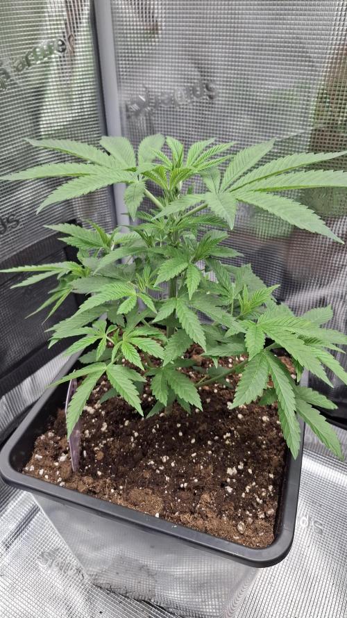 She is also forming the first 3 finger leaves, the root system is getting stronger and stronger and the roots are spreading throughout the pot.
