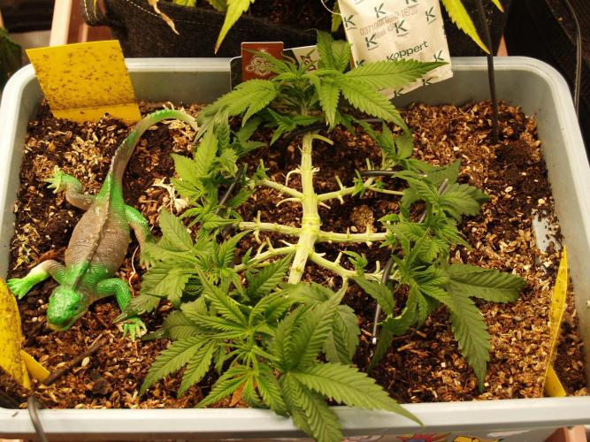-Tag 35 Heute wurde sie wieder etwas entlaubt und Trainiert, sie hat auch wieder Wasser mit Dünger bekommen. Sie sieht sehr gut aus.