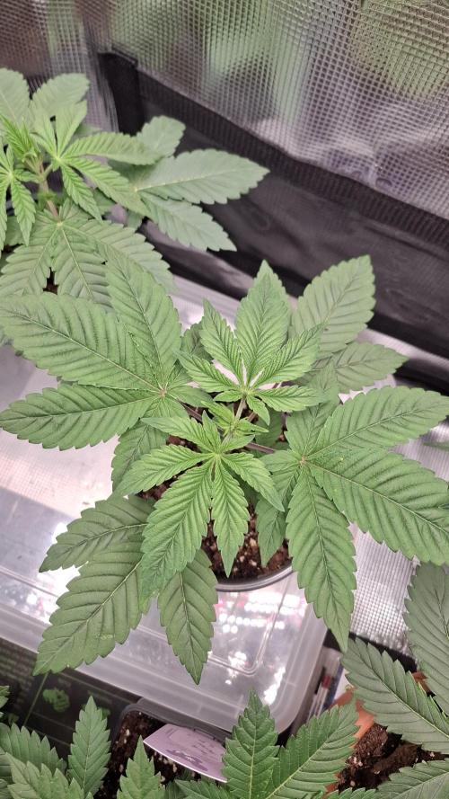 She is also getting her first 3 finger leaves, watering as always by weight so lift the pots.