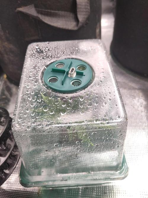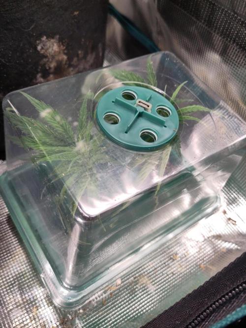 undermink She got real big. But I think I'll have to wait a bit before cutting more cutling form her. Because I only got two tens and when one is at flowering stage I cannot set new babies there. The first little cutling seemed to dislike the humidita in his new home so I put the plastic top back on. He got new leaves so I guess he will be fine...