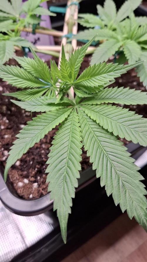 Die Chaos Cake macht sich weiterhin sehr gut, ich habe ihr 4 Fächerblätter genommen somit können sich die ersten 4 Seitentriebe besser ausbilden.
