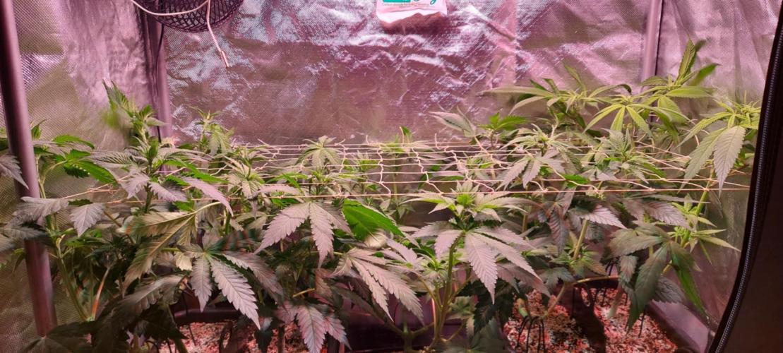 We’ve pretty much reached the end of the first week after switching to 12/12. Not much is happening at the moment. It’s gotten cold, and since I live in the forest, the temperature in the box has dropped while humidity has risen. On top of that, it’s really dense in there, so the fan is running at full power to bring down humidity—which lowers the temperature even more. A tough week in terms of conditions. I set up a net, but only for stabilization—it won’t be a SCROG.