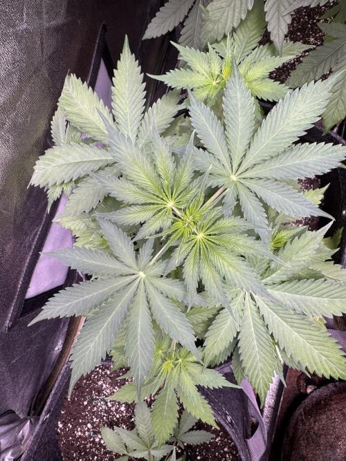 QueenOfTheKind I put her in an AC Infinity 5 gallon fabric pot filled with Coast of Maine Stonington Blend growers mix soil mixed with DynoMyco and watered her in.