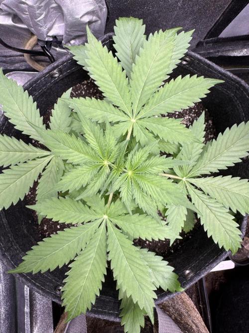 QueenOfTheKind I put her in an AC Infinity 5 gallon fabric pot filled with Coast of Maine Stonington Blend growers mix soil mixed with DynoMyco and watered her in.